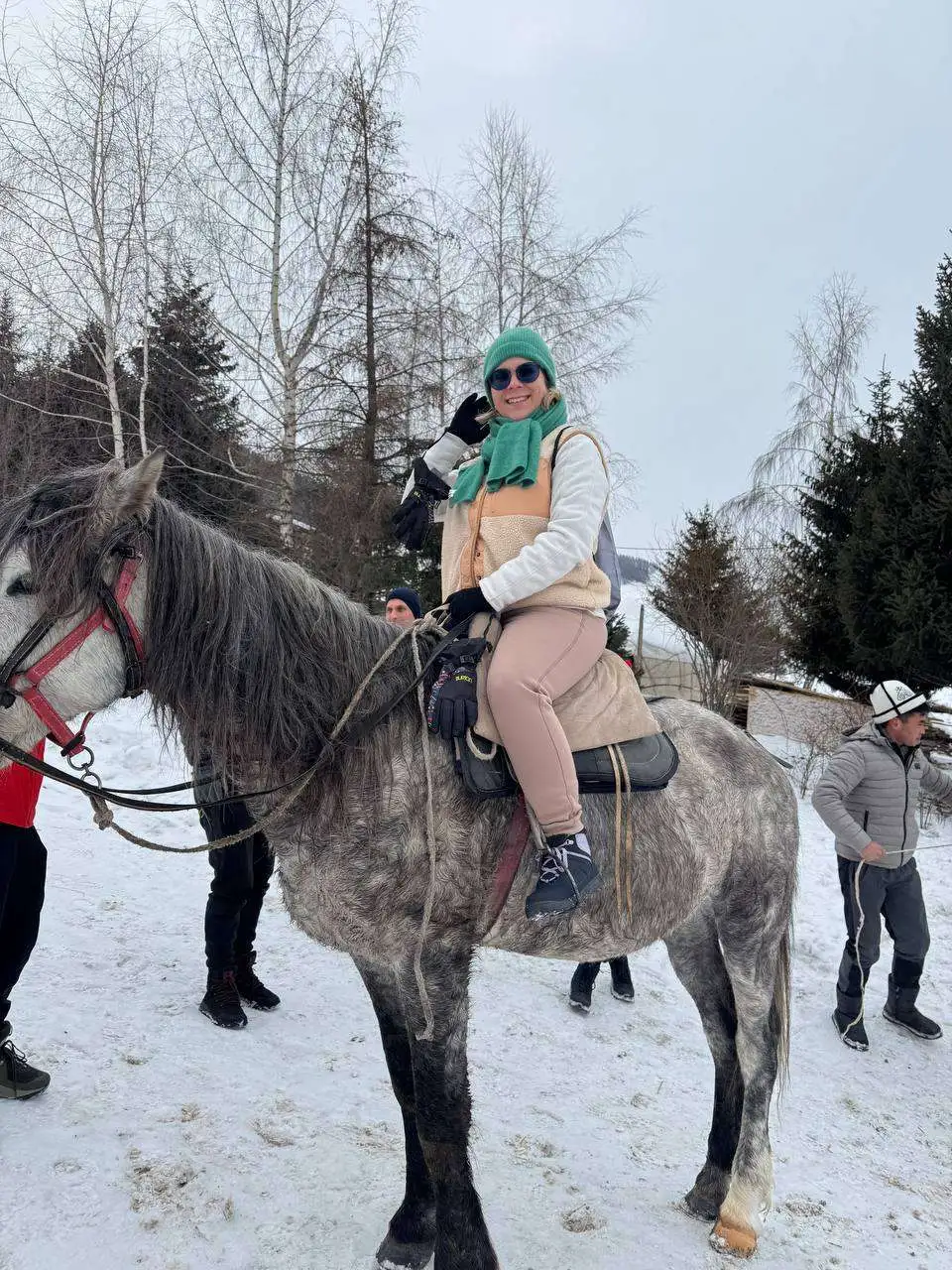 🐎 После обеда — вторая конная прогулка. Сегодня маршрут другой, более короткий и живописный. Лошади уже знакомы, вы чувствуете себя увереннее в седле. Тропа ведёт к панорамной точке, откуда открывается вид на всю долину Чон-Кемин. Остановка для созерцания: вы стоите на краю, внизу простирается заснеженная долина, справа и слева возвышаются горные хребты, впереди — бесконечность. Ветер свистит в ушах, но на душе абсолютный покой. Это момент, когда понимаешь своё место в этом огромном мире.